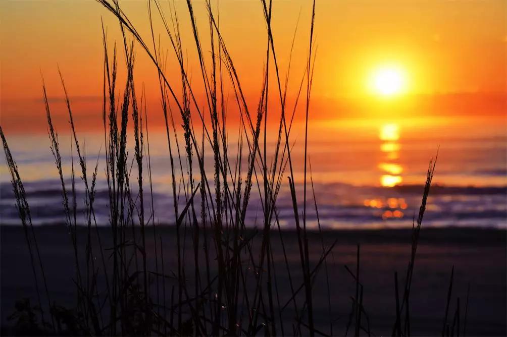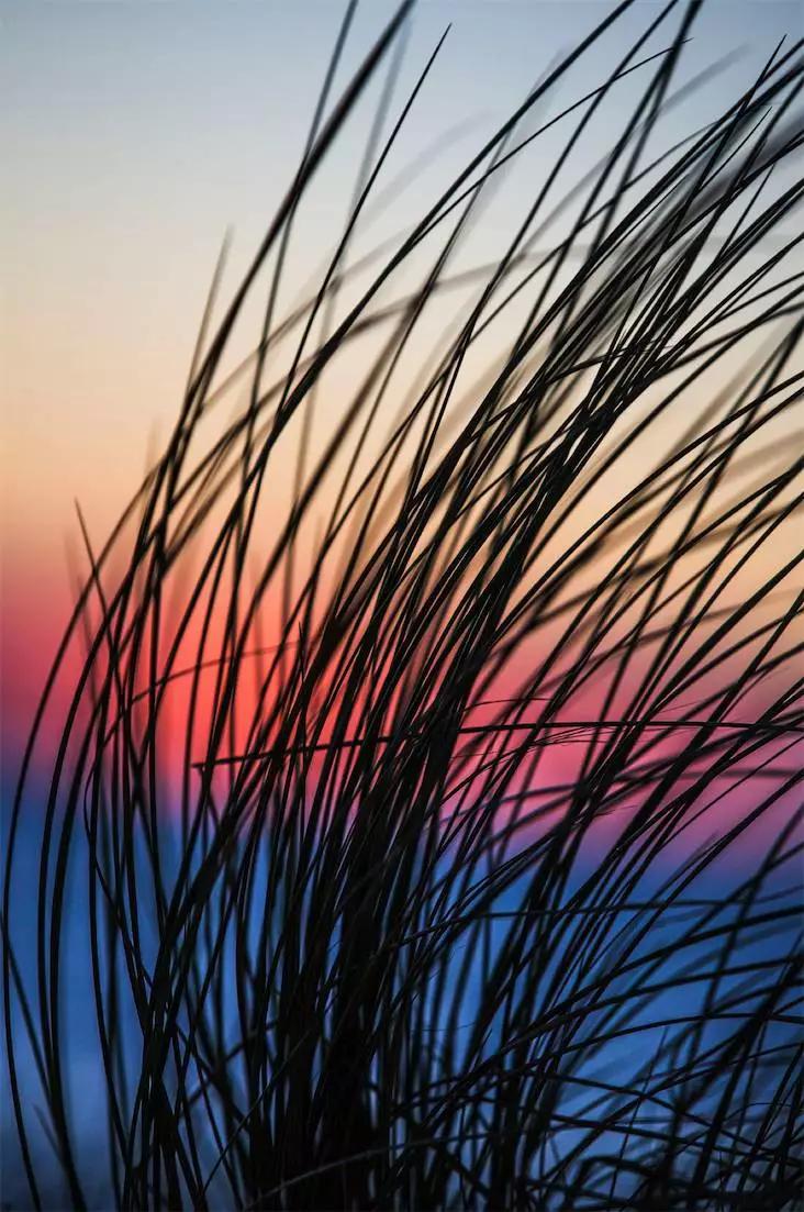 在海邊除了借助巖石作為前景拍攝慢門,也可以嘗試找一些形狀一致的草作為前景拍攝一些唯美的畫面。