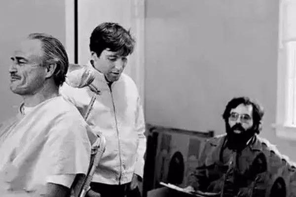 《教父》導演科波拉(右),主演白蘭度(左)、阿爾·帕西諾(中)。