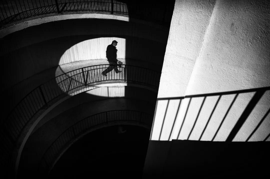 黑白色調讓環境題材的形狀、線條和模式更分明地呈現出來。比如,樓梯的臺階、玻璃地板、斑馬線等,這些都是我們平日里常見的建筑物。