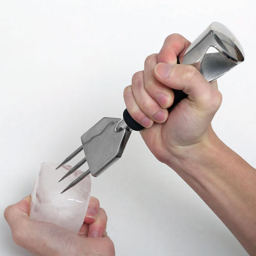 1、冰鎬、冰錐 Ice Picks:用于敲碎冰塊、鑿冰、削冰。調酒經常要用到老冰,需要用冰鎬將其加工成合適大小。比如福贊類雞尾酒用到的碎冰,大冰球、大冰塊,都會用到冰鎬、冰錐。開酒吧必備,家中自調可選用類似工具代替。最常見是以下三種類型。
