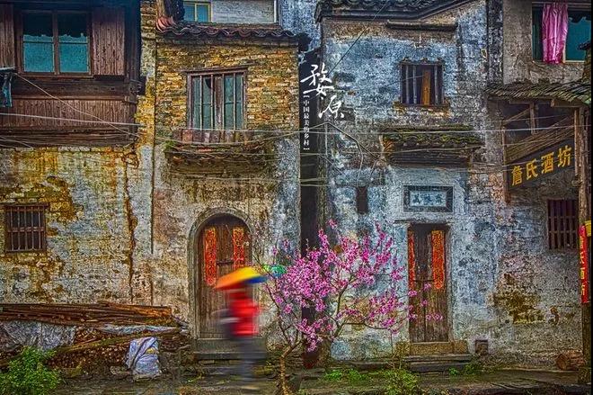 這張照片是在慶源村拍攝的。在這個(gè)古城兩旁是古建筑,中間是有一條小溪的,這個(gè)村落相對李村,李坑來說我認(rèn)為他更加原生態(tài)。這次婺源自由拍攝,對這個(gè)村印象最深刻的是因?yàn)閮膳蕴一ㄊ㈤_,梨花也盛開,剛好下了雨,如果說你讀過雨巷,此時(shí),走在這條古村,撐著雨傘,真的是走入了畫境里面了。所以還想去一次去這個(gè)地方,因?yàn)檫€有很多角度,有待慢慢挖掘。