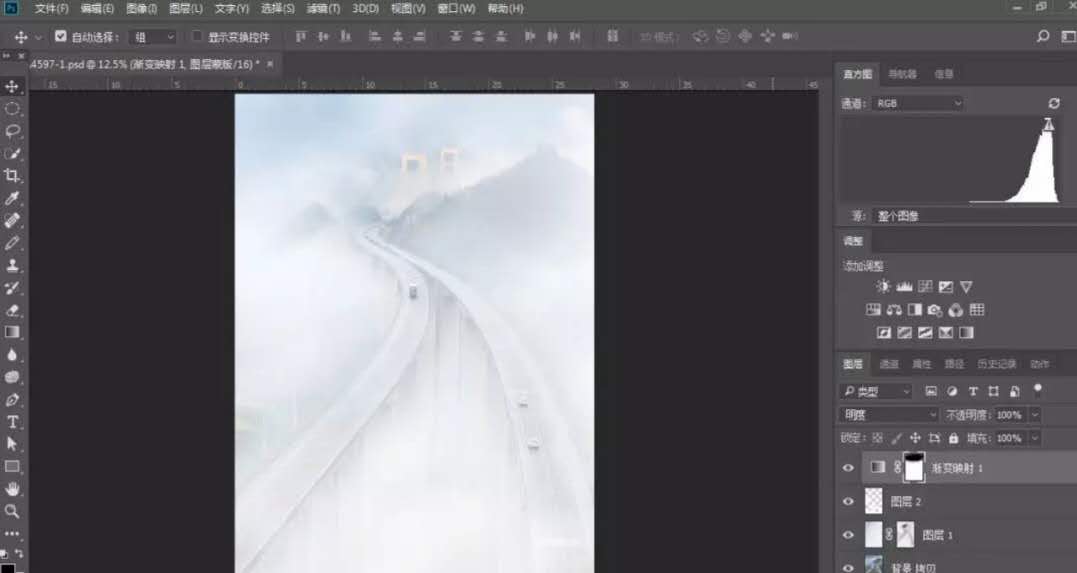 1.利用原片局部云霧,增加畫面整體的云霧效果。