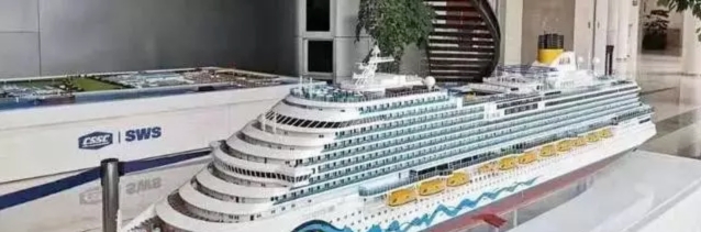 如果說效果圖是品牌還沒確定的產物,2019年10月18日上午10時40分左右,我國首艘國產大型郵輪在上海正式開工建設,現場的圖片依然是這樣的: