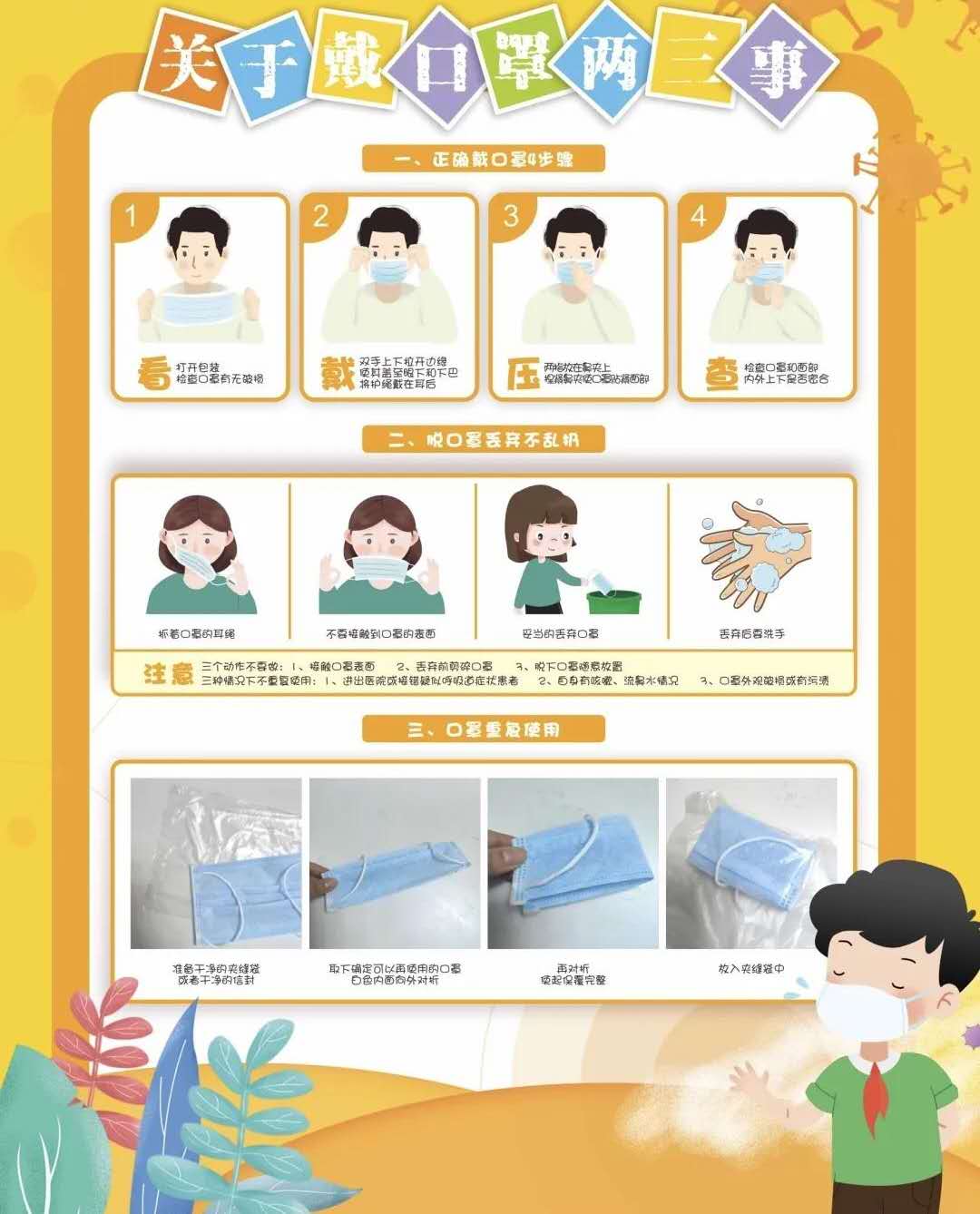 4.可以教下孩子如何正確使用口罩,特別是在學(xué)校吃午飯期間,如何正確取下口罩,同時不要用雙手觸摸口罩朝外的部分。
