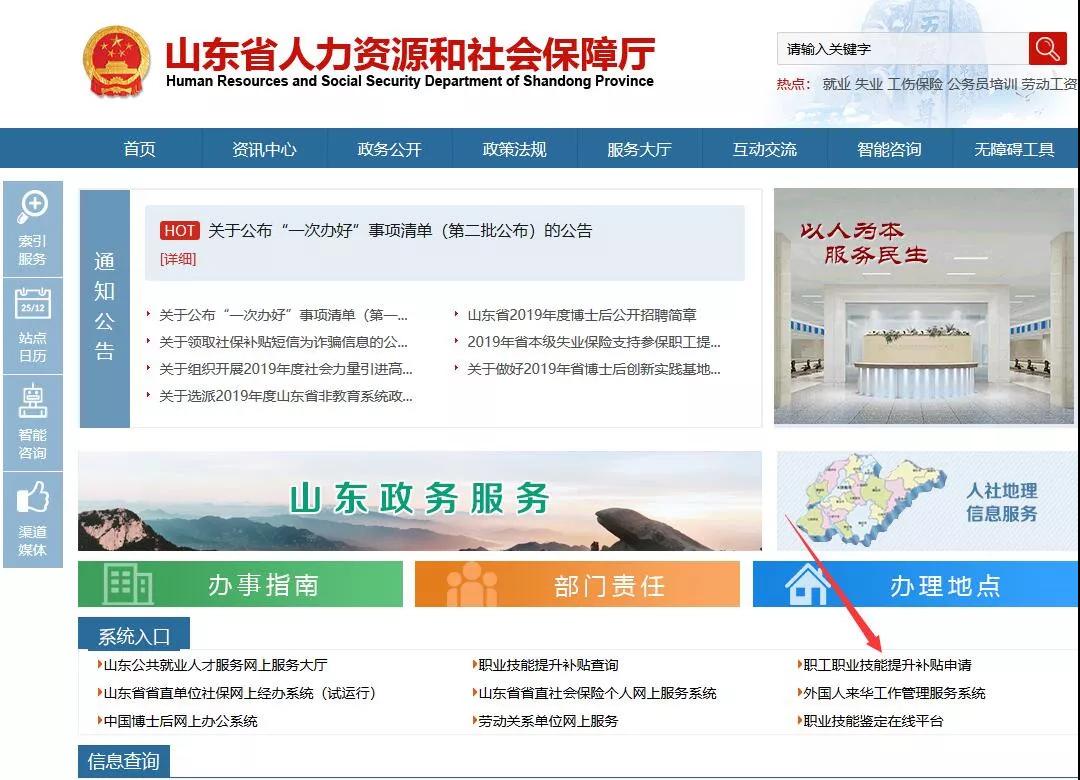 登錄山東省人力資源和社會保障廳官方網站http://hrss.shandong.gov.cn→服務大廳→職工職業技能提升補貼申請→填寫申報內容→提交→隔段時間→職業技能提升補貼查詢(注安師、消防師等59項專業技術人員職業資格證書不能網上申請的,至參保地人工申請)。