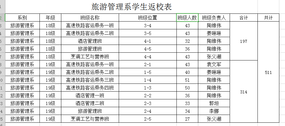 旅游管理系學生返校表