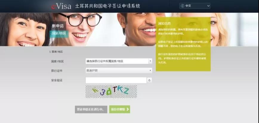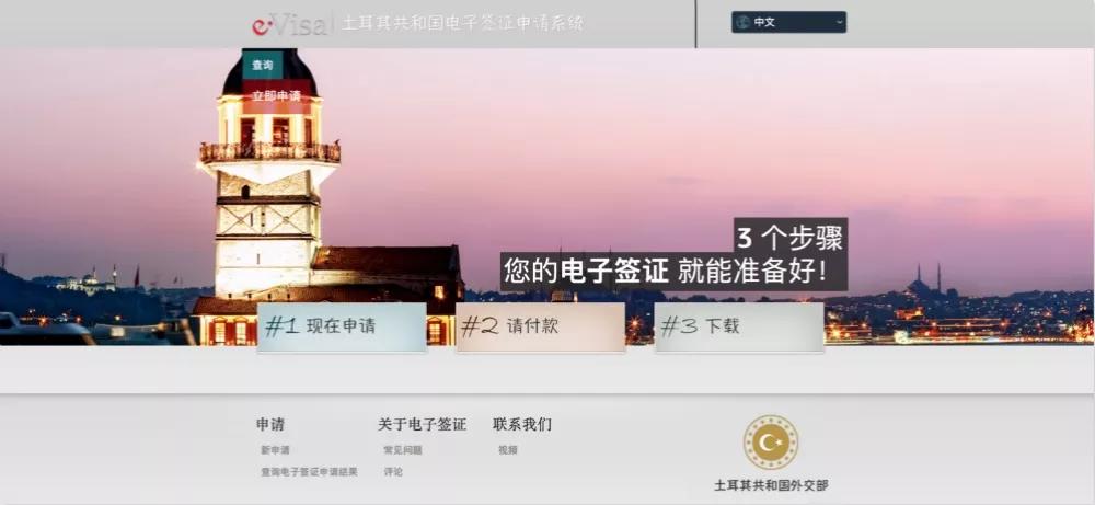 登錄土耳其共和國電子簽證申請網頁:https://www.evisa.gov.tr/zh/