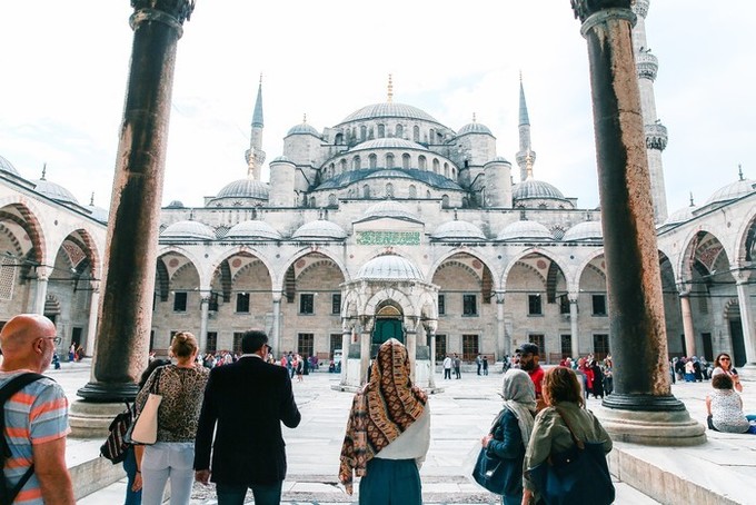 耗時七年建成的蘇丹艾哈邁德清真寺,又稱藍色清真寺,是伊斯坦布爾的地標建筑。墻壁使用了土耳其瓷器名鎮燒制的藍彩釉貼瓷,以白色為底,刻有豐富的花紋圖案,使得整個清真寺內都充滿了藍色。清真寺是伊斯坦布爾最大的圓頂建筑,四周建有六座宣禮塔,是全世界唯一擁有六座高塔的清真寺,世界十大奇景之一。