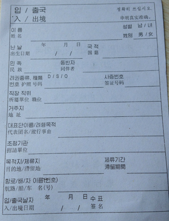 從北京或沈陽直飛平壤的方式入境朝鮮會在護照上留有朝鮮貼紙簽證,但是,如果乘火車、巴士入境都不會在護照上留下朝鮮貼紙簽證的!!只會留下中國邊檢的出入境印章。
