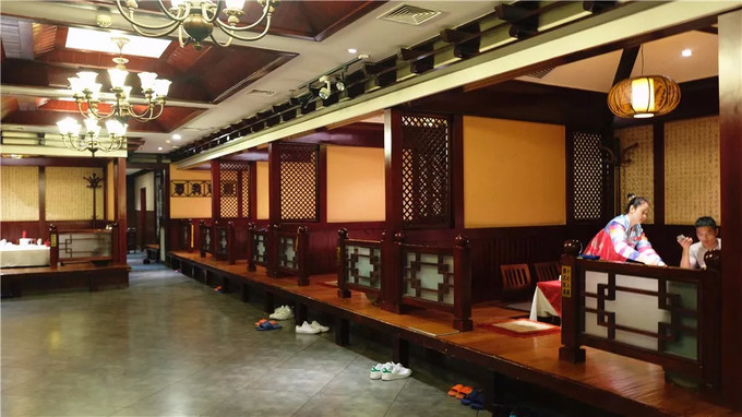 這個飯店里的陳設和布局,都是有著鮮明的朝鮮特色的,墻紙、掛飾、裝修調調暖色而濃重。