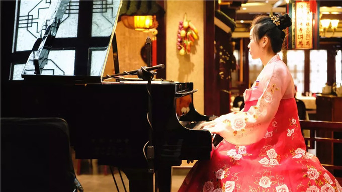 這些女孩能歌善舞、多才多藝。餐廳每天都有固定的時間是文藝表演,她們一到點便會換下工作服,換上漂亮的演出服在大堂里彈鋼琴、唱歌。