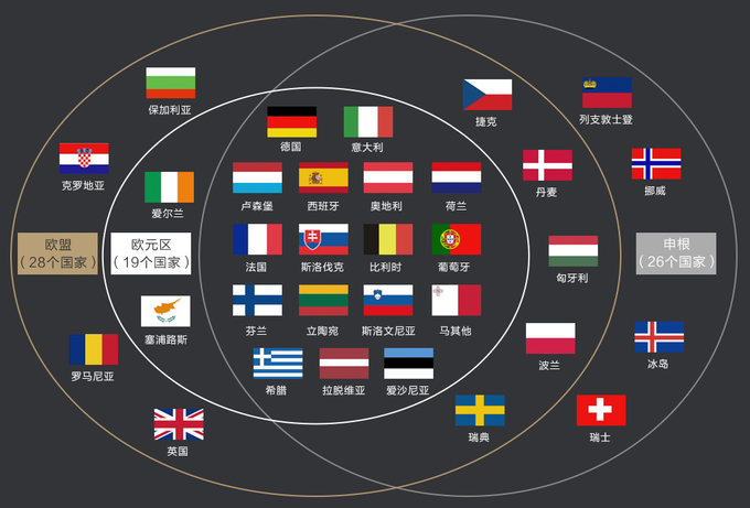 歐盟成員國不等于申根國(注:英國已提請退歐,尚未辦完退歐手續(xù))