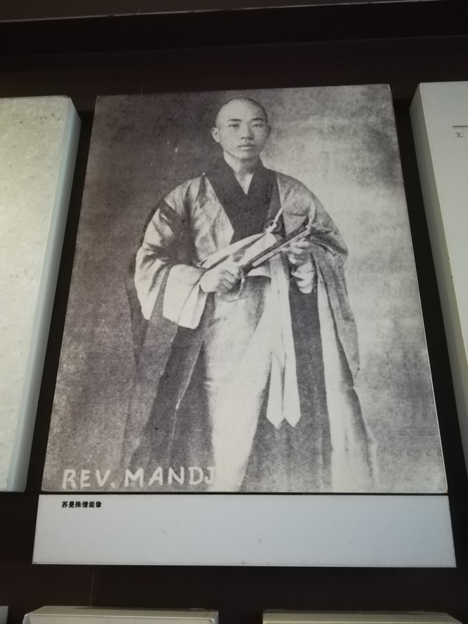 雕像左邊是蘇曼殊的紀(jì)念館,陳列了幾幅蘇曼殊書(shū)畫(huà)及一些資料的復(fù)制品。