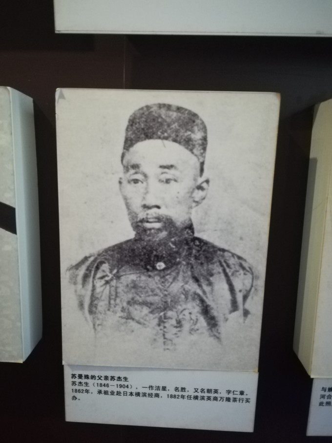 蘇曼殊先生之父蘇杰生,在日本經(jīng)商,娶一日本女子為妻生下曼殊,后任英商茶行買(mǎi)辦