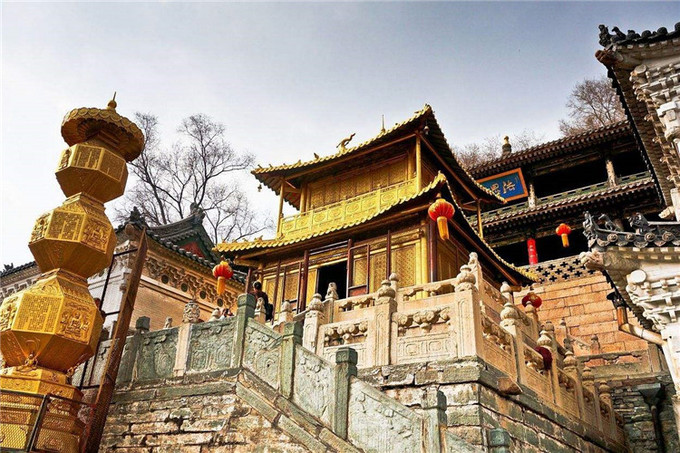 顯通寺始建于始建于漢明帝永平年間,面積大,時間早,和洛陽白馬寺齊名,被稱為“中國第二古寺”,里面有座銅殿始鑄于明萬歷三十八年(公元1610年),共用銅10萬斤,外層鍍金,寺中有很多重點文物,1982年,被列為重點文物保護單位。
