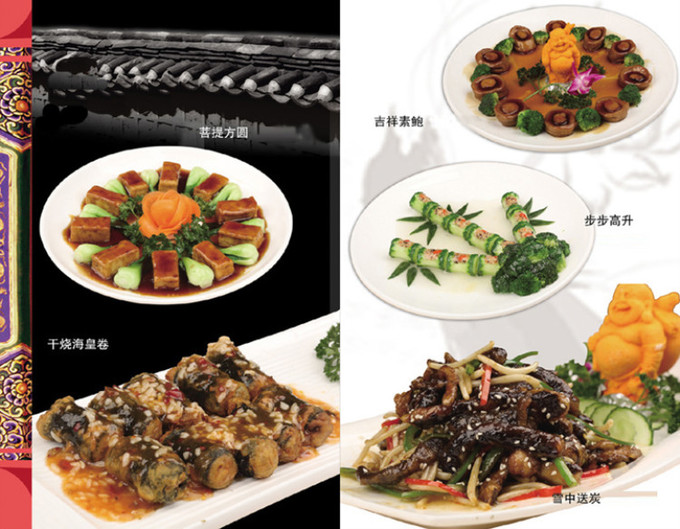 五臺山的素齋是用豆制品、面精、蔬果等為原料,通過精心的工藝制作和蒸、煮、炒、燒、燉烹調而成,如果您看著端上來的是條魚,吃起來也是條魚,但它卻是一道素齋。