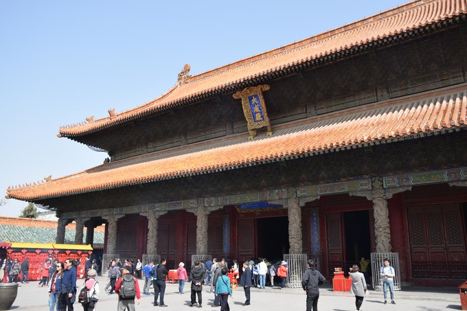 大成殿,孔廟的主體建筑,重檐九脊,擎檐 石柱 二十八根,“大成殿”牌匾為清雍正帝手書,殿內(nèi)“萬世表”匾額為 清康 熙帝手書。
