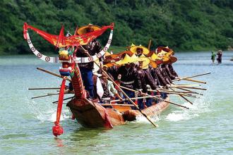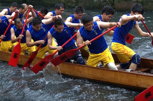 扒龍舟是端午節的一項重要活動,是古代龍圖騰祭祀的節儀,乃遺俗也。據《河姆渡遺址第一期發掘報告》稱,早在7000年前,遠古先民已用獨木刳成木舟,并加上木槳劃舟。龍舟最初是用單木舟上雕刻龍形的獨木舟,后來發展為木板制作的龍形船。