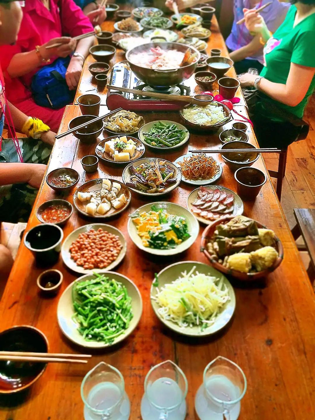 吃得安心西江安排特色長桌宴酸湯魚火鍋品苗家米酒,體驗苗寨人家的“高山流水”,感受苗妹的熱情