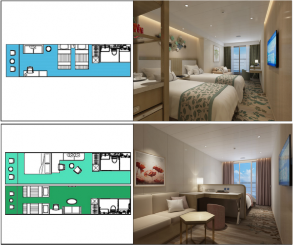 極少部分艙房有第三人沙發床 |