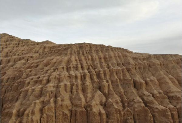 千佛崖地處花土溝鎮東北的游園溝。第三紀紅色砂巖褶皺構造綿延展布,由溝口向里延伸,自西向東崛起。在陡峭的山崖布滿紅色泥質懸垂凝結構,如同懸空紅瀑布傾瀉而下,氣勢磅礴。在這里可以看到有似泥鐘乳泥蘑菇、泥靈芝等形狀的凝結物。穿過這座天然帷幔,繼續往里約5公里處,一座懸崖撲面而來,山崖上錯落有序地排列著成千上萬個泥菩薩,層層疊疊,這些泥彌自上而下逐漸由小變大,小則幾米,大則幾十米及至上百米,猶如千佛坐禪,正襟危坐,這神工鬼斧雕琢的奇跡,令人驚嘆不已。