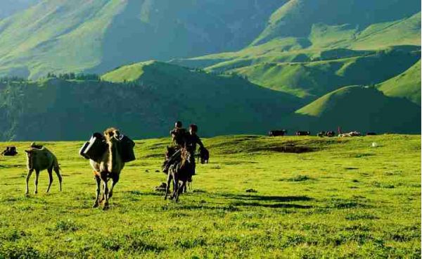 喀拉峻大草原位于新疆伊犁河谷的特克斯縣境內(nèi),是西天山向伊犁河谷的過渡地帶,這里降水豐富,氣候涼爽,土質(zhì)肥厚,十分適宜牧草的生長,生長有上百種優(yōu)質(zhì)牧草。