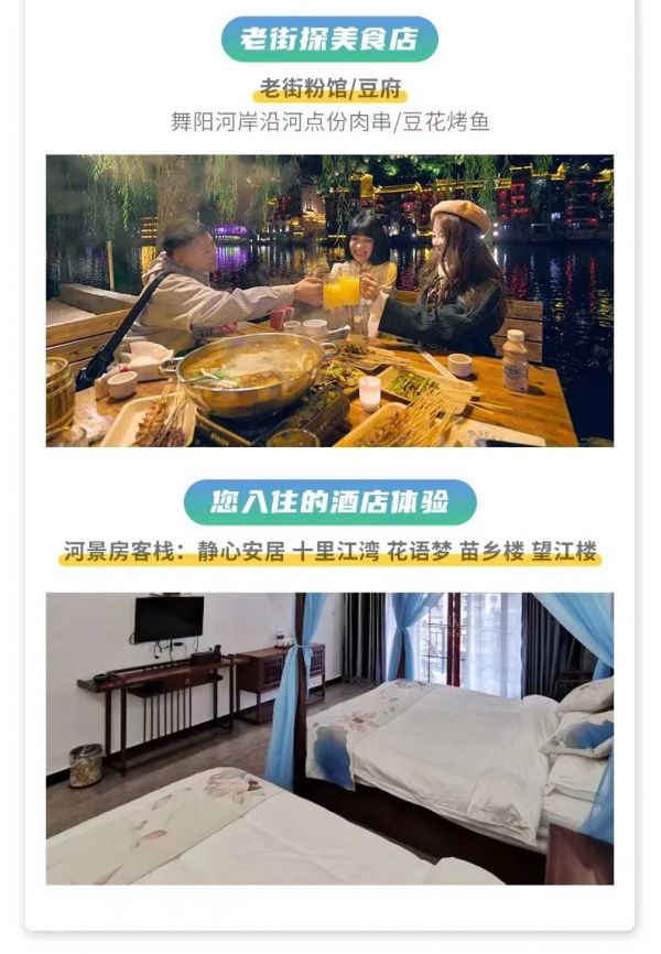 1.最A保證:保證入住鎮遠古鎮景區,尊享臨河河景房,不出房間即可欣賞舞陽河夜景。
