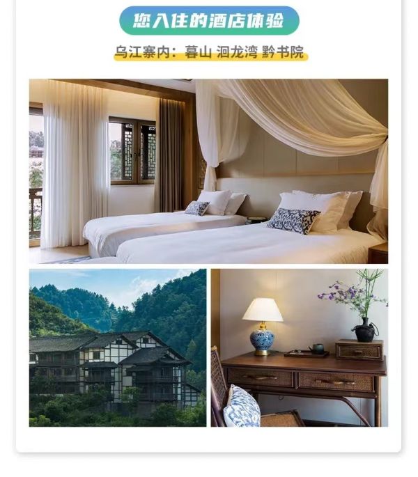 2.最A途窩:全程優選高品酒店,豪華舒適,保證入住烏江寨景區,深度休閑游覽景區。