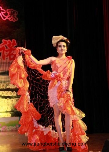 比賽中,各支參賽隊伍將廢棄蚊帳、塑料袋等元素合理利用,緊貼"綠色生活,青春承諾"這一主題,創(chuàng)意獨特,給在場的觀眾帶來了一場完美的視覺盛宴,贏得了陣陣掌聲。