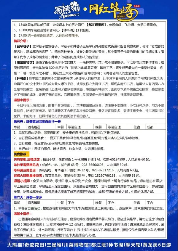 成都-蜀熊貓雙飛6日游