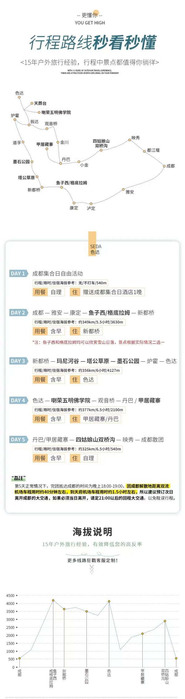 請對應使用我方色達2-6人VIP自由小團5日行程,因使用其它行程造成的投訴,責任自負;請仔細閱讀以上行程文檔,同意并保證遵守我方安排,以免為您帶來不必要的麻煩;如產(chǎn)生合同糾紛或人身意外事故,按《中華人民共和國合同法》、《道路交通法》、《保險賠償條例》裁定;本行程作為旅游合同附頁與旅游合同同等法律效力。