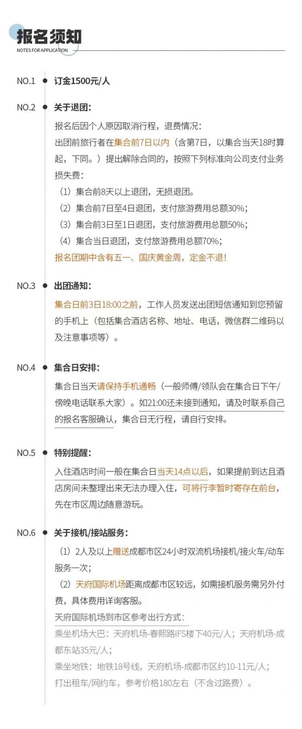 1.冬季11月-次年3月如因魚子西/格底拉姆封山無法前往,則將魚子西/格底拉姆景點換為八郎生都。