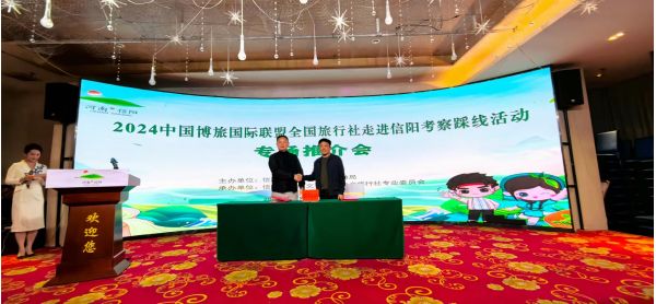 3月15日,劉寶平受邀參加由信陽市文化廣電和旅游局主辦,由信陽市文旅文創行業協會旅行社專業委員會承辦的2024博旅國際聯盟全國旅行社走進信陽考察踩線活動,來并代表博盟和當地簽訂合作協議。