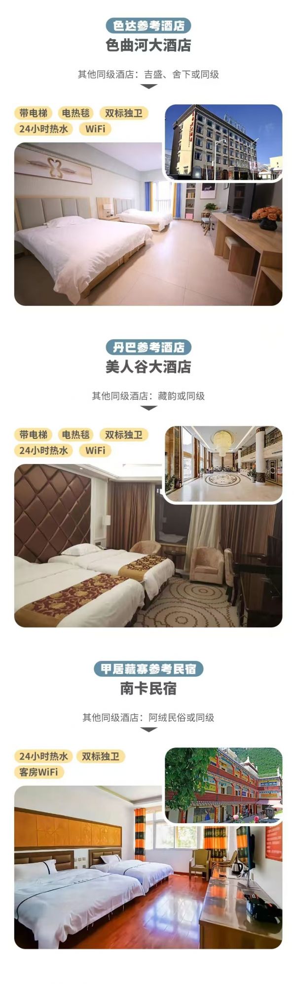 (6)對(duì)于住宿有特殊要求的隊(duì)員,請(qǐng)?jiān)趫?bào)名時(shí)告知客服(要求全程一個(gè)人住宿,大床房,三人間等等),在報(bào)名時(shí)確定費(fèi)用,上團(tuán)后臨時(shí)修改住宿,可能無(wú)法滿足其要求;