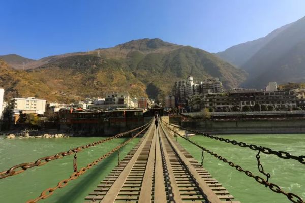 ? 成都出發(fā)到達(dá)瀘定縣城,行走在瀘定鐵索橋拍照留影,感受紅軍飛奪瀘定橋的驚險(xiǎn)雄壯!