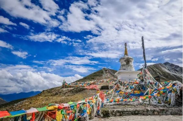 ? 隨后翻越有“康巴第一關(guān)”之稱的【折多山】,之所以稱它為康巴第一關(guān),是因?yàn)檎鄱嗌胶0问侵匾牡乩矸纸缇€,以東高山峽谷,以西則是青藏高原的東部。在折多山埡口,有一堵布滿經(jīng)幡的祈愿墻,也被稱作【川藏第一祈福墻】,除了欣賞折多山的美麗景色,大家還可以在飄飛的經(jīng)幡中為親朋好友祈福。