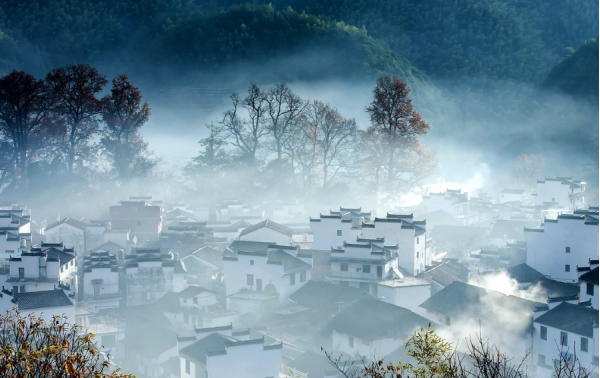 清晨前往曉起村,拍攝曉起的古樟樹群。這些古老的樟樹形態各異,晨霧繚繞其間時,宛如仙境。在曉起的古街巷中,拍攝保存完好的徽派建筑,重點關注建筑上的徽派裝飾藝術。