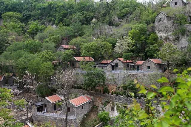 最讓人驚訝的莫過于建于懸崖峭壁上的房屋。村莊三面環山,以斷崖為障,隱于樹木之間。各種石頭砌成的房子,依山就勢,高低錯落,或依傍于懸崖旁,或坐落于巨石之上,懸崖最高處達60余米。從山下望上去,房子就象掛在天上,青石板路圍著山腰轉了幾轉,好像絲帶在山間飄舞,所以村子得“天上的村落”之美名。