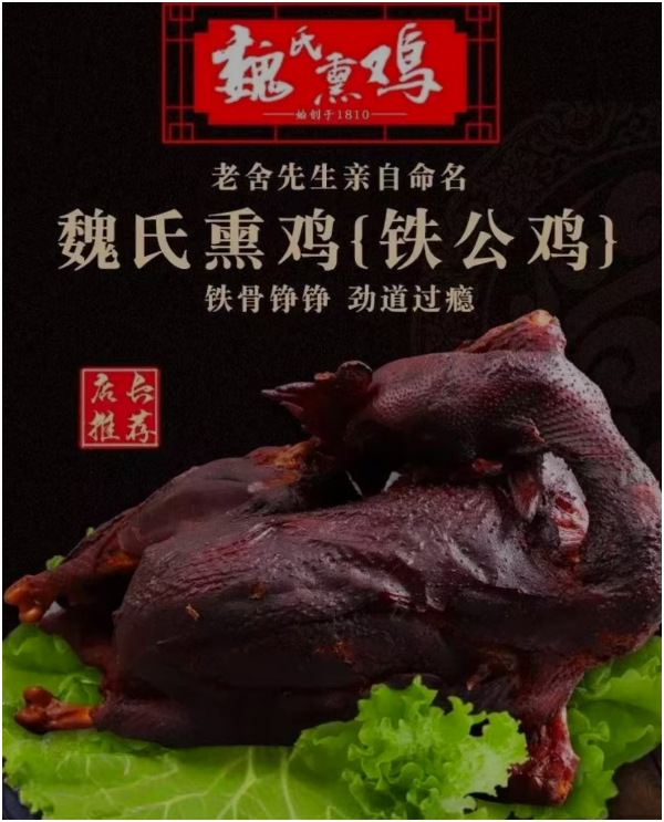 自此,魏氏熏雞代代相傳,歷經七代傳人,已有200多年的歷史。魏氏熏雞歷經七代傳承,不斷豐富和發展了餐飲文化,成為魯菜中的代表。其先后被評為1991年廣州商品交易會最佳地方名吃、1997年中國山東旅游博覽會優秀旅游商品、2002年中國江北水城(聊城)文化旅游節指定產品等。2009年,魏氏熏雞被列入第二批山東省非物質文化遺產名錄。此外,魏氏熏雞還曾被老舍等著名作家品嘗并贊譽,被譽為“聊城鐵公雞”。