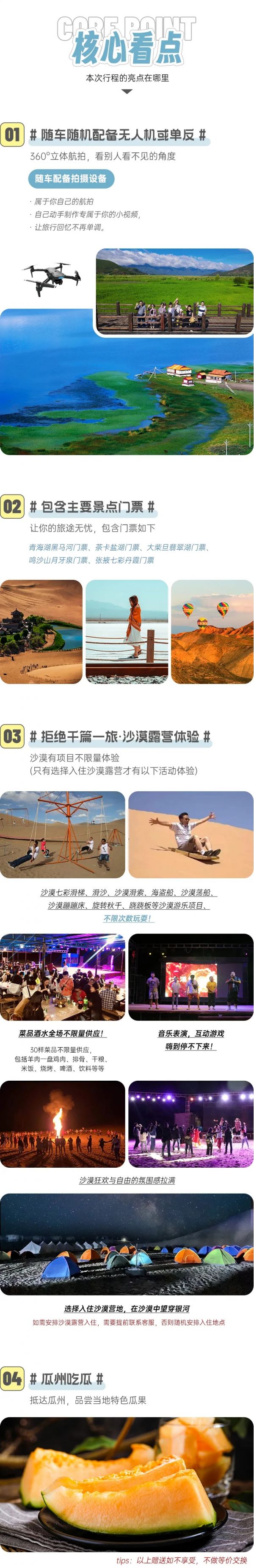 門票:包含茶卡鹽湖門票、鳴沙山月牙泉門票、張掖七彩丹霞門票、青海湖黑馬河門票、大柴旦翡翠湖門票
