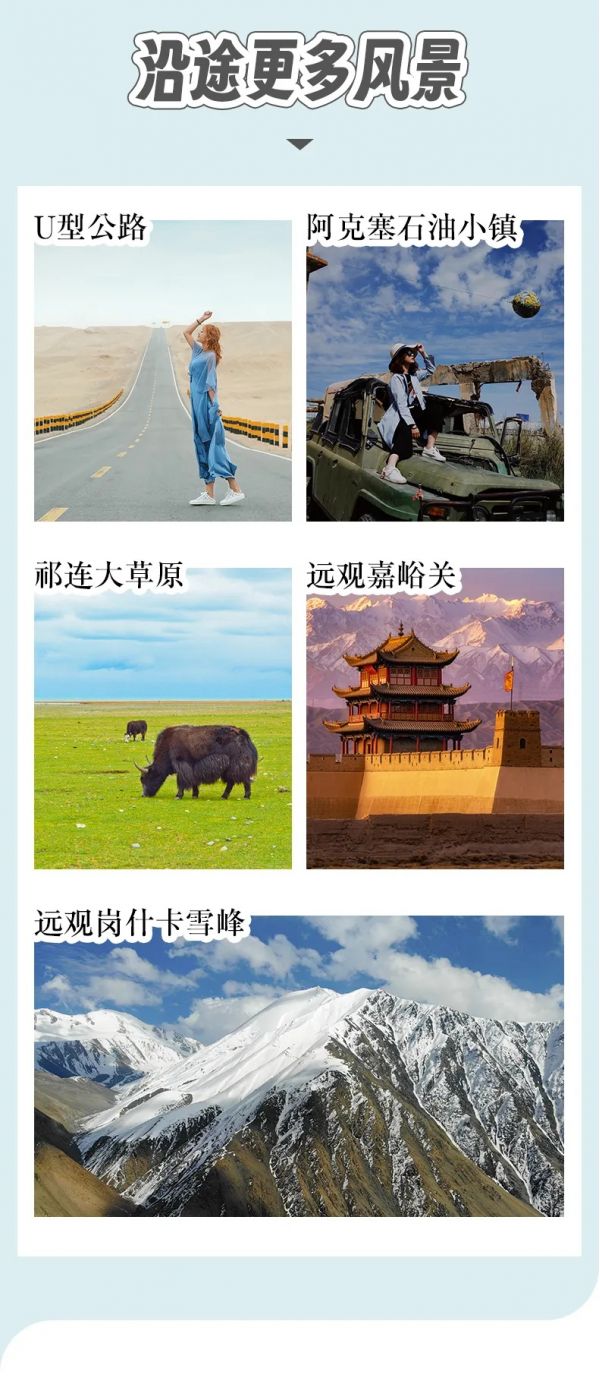 今日行車時(shí)間較長,建議游客自備一些零食在路上用,途中可欣賞到西北的戈壁美景和祁連山上終年不化的積雪。