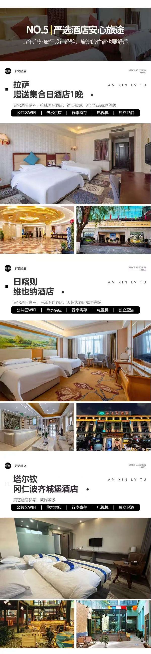 日喀則:維也納酒店、雍澤湖畔酒店、天臨大酒店或其它同級酒店
