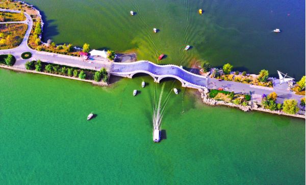 船游東昌湖約30分鐘。東昌湖風景名勝區,系國家歷史文化名城——聊城西南市區,東、北、西分別以聊城市區主干道柳園路、東昌路、湖西路為界,南至湖南路,總面積20.6平方公里。馳名中外的京杭大運河穿風景區而過。東昌湖風景名勝區以建于北宋時期的聊城古城為中心,以水面遼闊、風景秀麗、環繞于古城區四周的東昌湖為依托,集中體現了聊城“水、古、文”的特色,營造出聊城“城中有湖,湖中有城,城湖河一體”的獨特風貌,是山東西部和冀、魯、豫接壤地區最為著名的風景游覽區。
