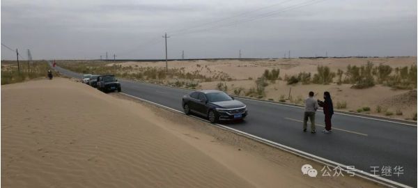 沙漠中向西北延伸的26公里公路筆直如線,車窗敞開著,帶著涼意的風裹著細沙掠過身旁,遠處陰山山脈的輪廓在薄霧中漸漸清晰,對“七彩神山”的期待,在晨光里慢慢升溫。