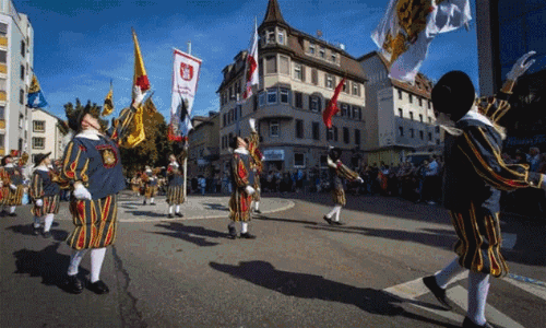 踏入施瓦本門的門洞,你會進入一個截然不同的世界。這里沒有軍事裝備或守衛室,而是布滿了一個個錫制人物組成的微型場景。比如弗萊堡建城場景、三十年戰爭場景、黑森林傳統生活等。