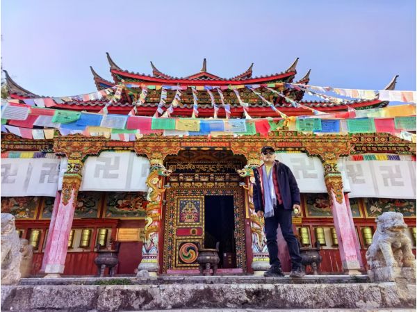 清晨的香格里拉,獨克宗古城的轉經筒在陽光下轉動,劉會長和隊員們慢慢逛著。