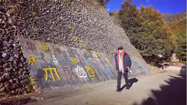 接著,我們奔赴玉柱擎天,這座納西神山峭壁之上,摩崖石刻歷經風霜,字跡卻依舊清晰可辨。