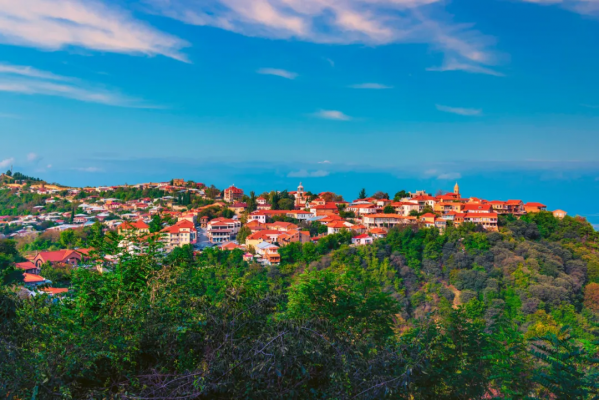 西格納吉位于葡萄酒產(chǎn)區(qū)的山崗之頂,這里隨處可見葡萄種植園和葡萄酒莊,還不時有滿載成熟葡萄的大卡車駛過。這里的房子也極具特色,黃墻紅瓦,碉樓古堡,宛如童話中走出來的夢想小鎮(zhèn)。