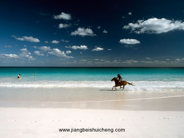 巴哈馬首都拿騷的海邊,一片粉紅讓人以為那里開滿了花兒,走近了,卻發現這竟然就是沙灘的顏色。原來整個沙灘都是由紅珊瑚被海水沖刷成的粉末構成的。即使是平日,拿騷的街市也充滿了歡快氣息,只要藝人鼓點一響,一秒鐘之間,花花綠綠的人們便潮水般涌來,又唱又跳!當你走在街頭,如果旁邊的帥哥靚女伸手過來說:“Hi,Dancewithme!”你可千萬不要驚訝??!