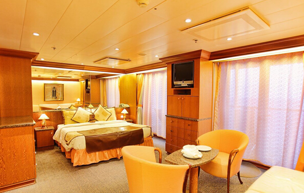 3、船上有一定數(shù)量的單人客艙,其價(jià)格扣除了一部分關(guān)稅。在某些船上有一定數(shù)量的雙人客艙,如支付差額,可用于單人。您在預(yù)定時(shí),請(qǐng)核對(duì)可用性與價(jià)格。套房特惠除與所有客艙享有相同的服務(wù)和特色外,迷你套房和套房中的游客還享有如下特別優(yōu)惠:優(yōu)先登船-仆役服務(wù)-每天供應(yīng)新鮮水果-套房?jī)?nèi)享用午餐和晚餐(應(yīng)要求)-極可意浴缸-浴衣和拖鞋-應(yīng)邀參加船長(zhǎng)的高級(jí)雞尾酒會(huì)-可在點(diǎn)菜餐廳優(yōu)先預(yù)訂席位-可由仆役服務(wù)預(yù)約觀光活動(dòng)(命運(yùn)女神號(hào)與維多利亞號(hào)上的迷你套房?jī)H有淋浴)。